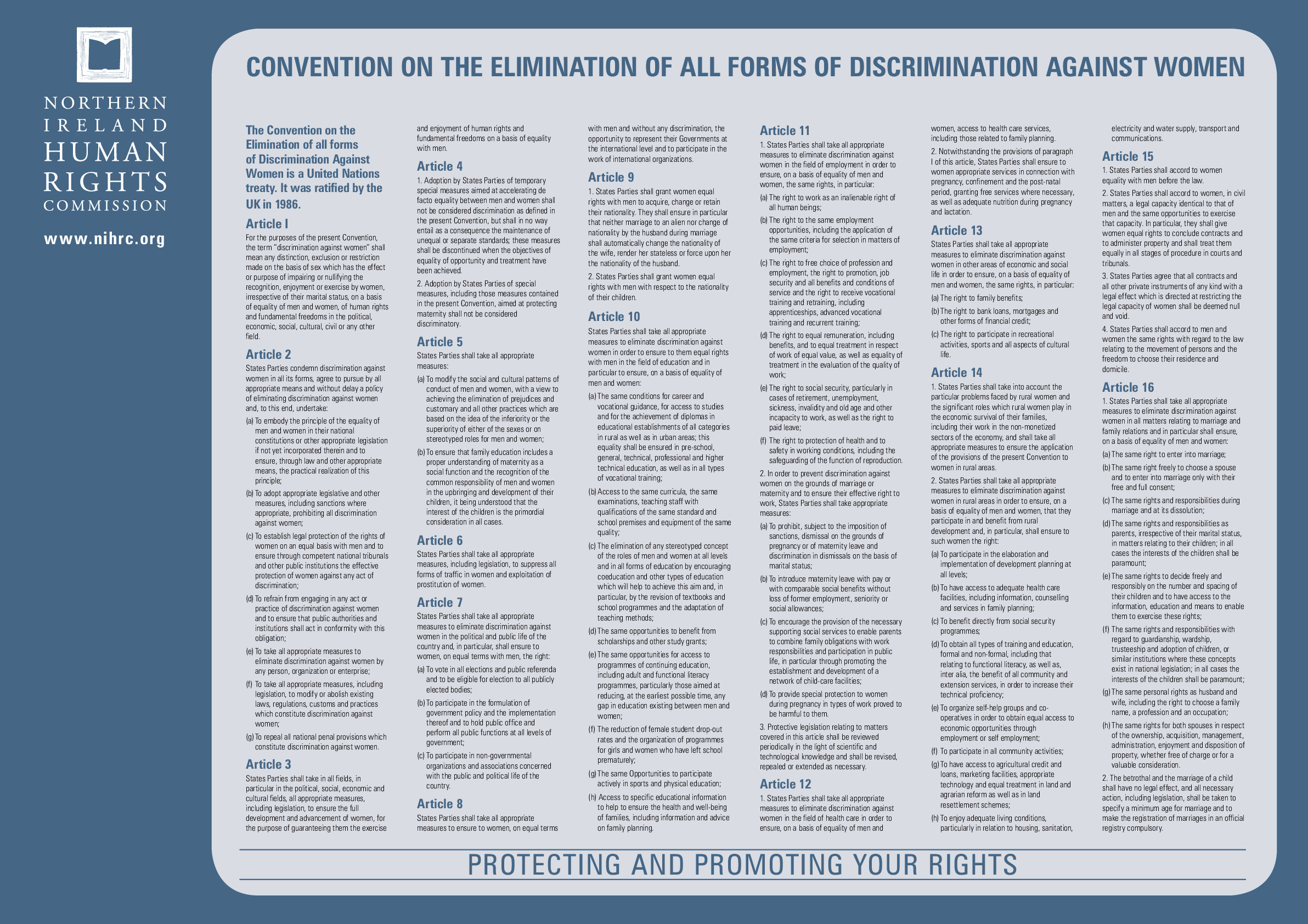 Download our Convention on the Elimination of All Forms of Discrimination Against Women (CEDAW) Poster.