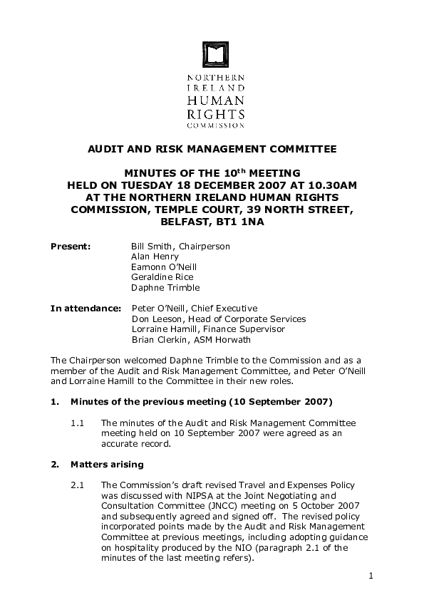 10th Audit and Risk Management Committee Minutes 18th December 2007