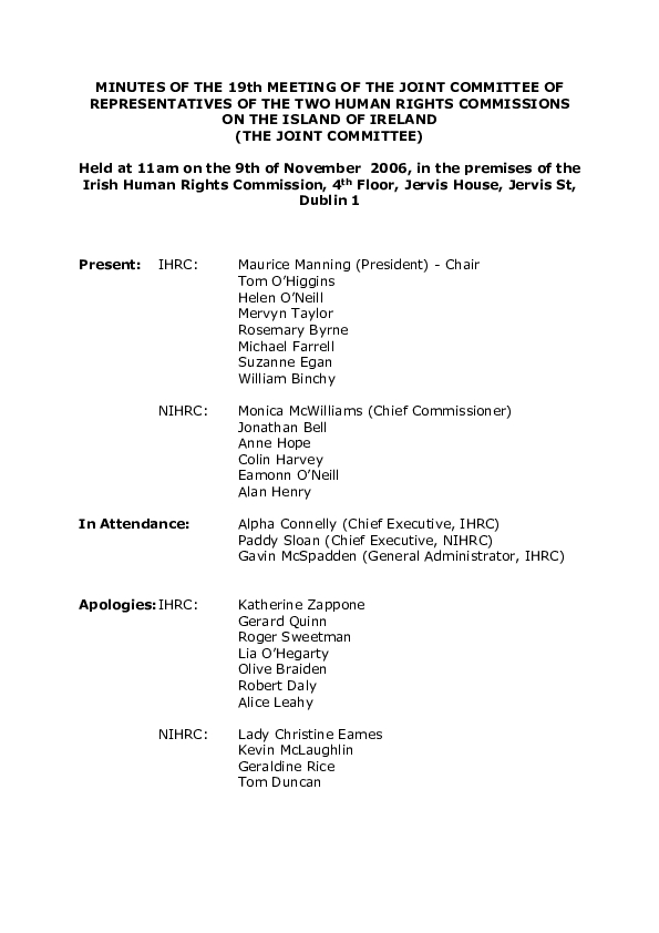 Minutes of the 19th Joint Commission Meeting held 9th November 2006