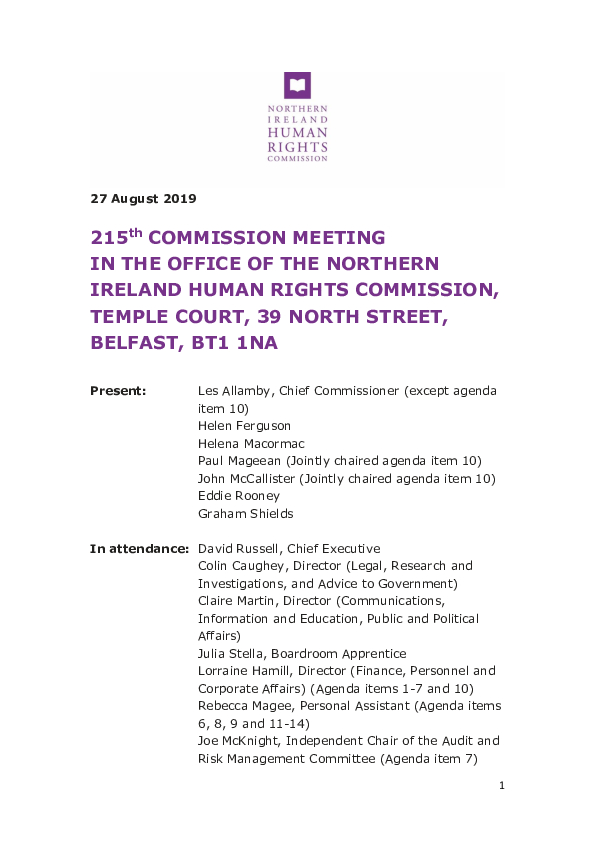 215th Commission Meeting 27 August 2019