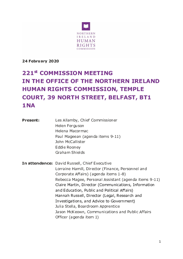 Read the minutes of the 221st Commission Meeting, held on 24 February 2020.