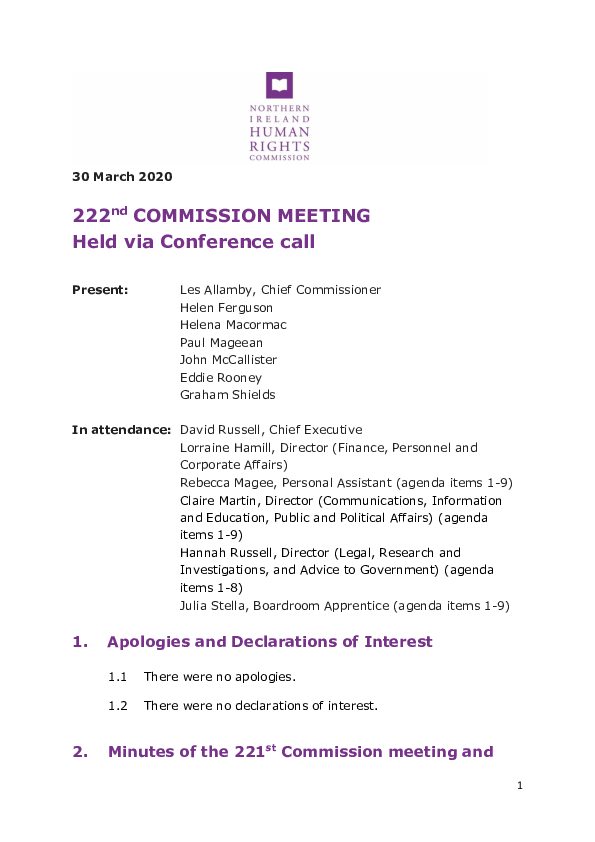 222nd Commission Meeting 30 March 2020