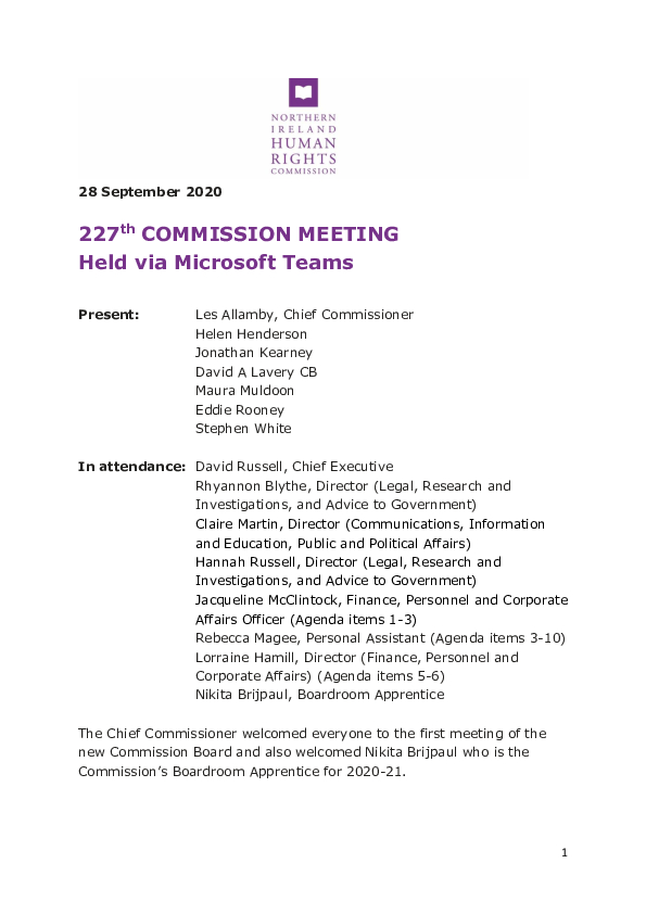 Read the minutes for the 227th Commission Meeting 28 September 2020.