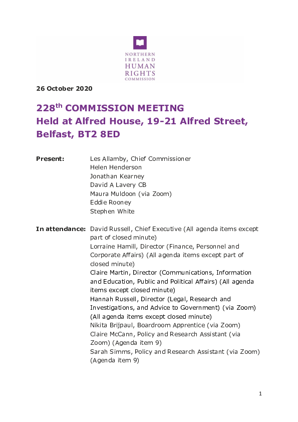 The Northern Ireland Human Rights Commission held its 228th Commission Meeting on 26th October 2020.