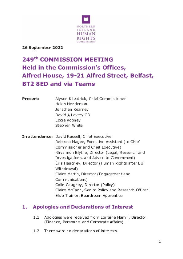 249th Commission Meeting 26 September 2022