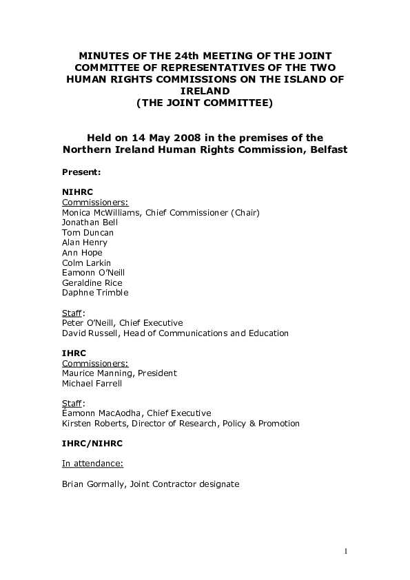 Minutes of 24th Joint Commission Minutes held 14th May 2008