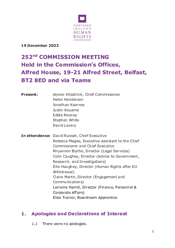 252nd Commission Meeting 19 December 2022