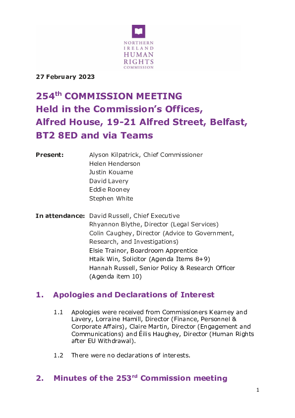 Read the minutes for the 254th Commission Meeting 27 February 2023.