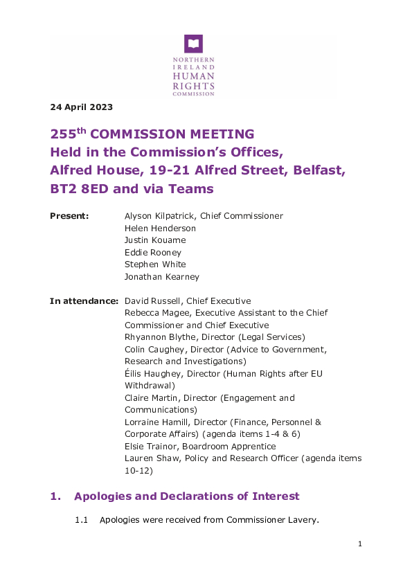Read the minutes for the 255th Commission Meeting 24 April 2023.