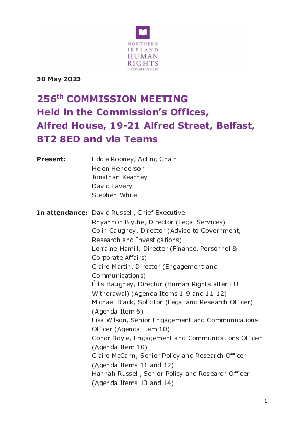 Read the minutes for the 256th Commission Meeting 30 May 2023.
