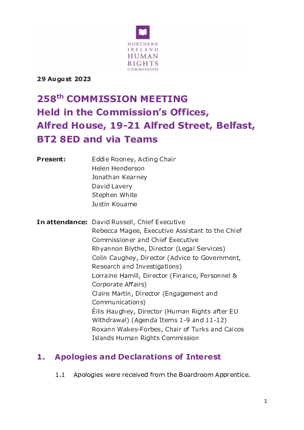 Read the minutes for the 258th Commission meeting 29 August 2023.