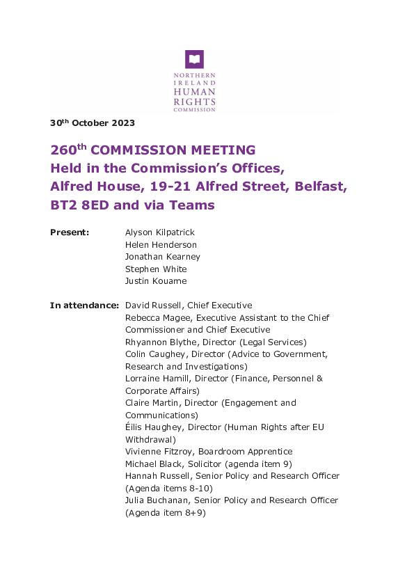Read the minutes for the 260th Commission Meeting 30 October 2023.