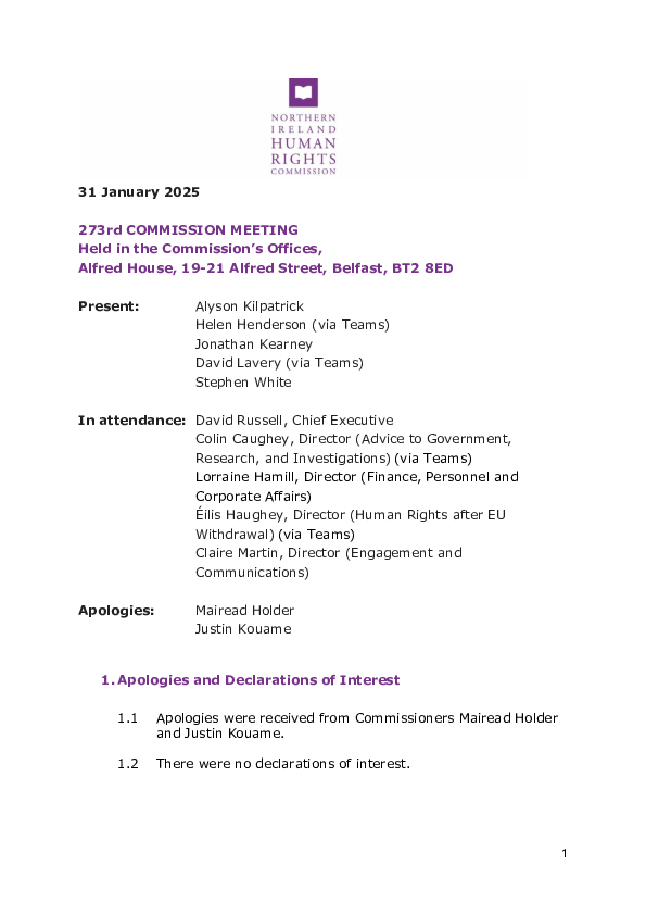 Read the minutes for the 273rd Commission Meeting 31 January 2025.