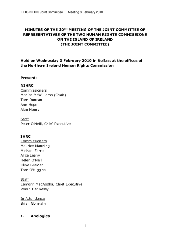 Minutes of the 30th Joint Commission meeting held 3rd February 2010