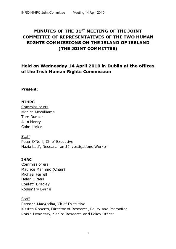 Minutes of the 31st Joint Commission Meeting held 14th April 2010