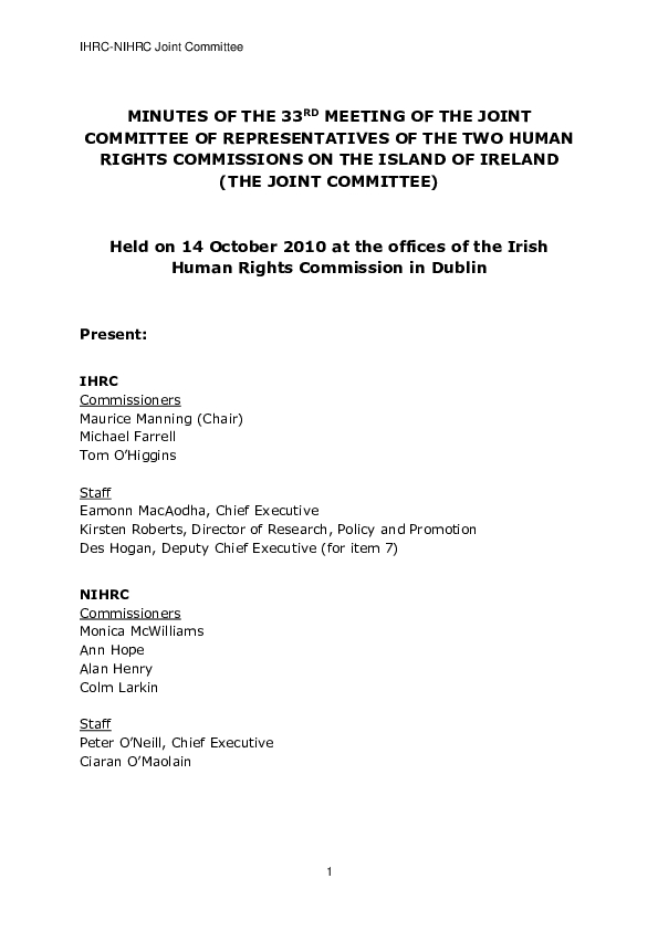Minutes of the 33rd Joint Commission Minutes held 14th October 2010