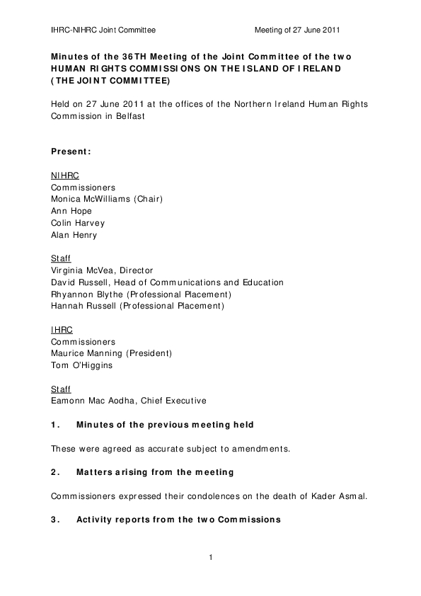 Minutes of the 36th Joint Commission meeting held 27th June 2011
