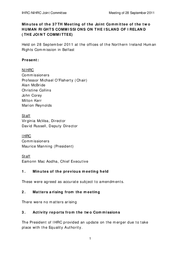 Minutes of the 37th Joint Commission meeting held 28th September 2011