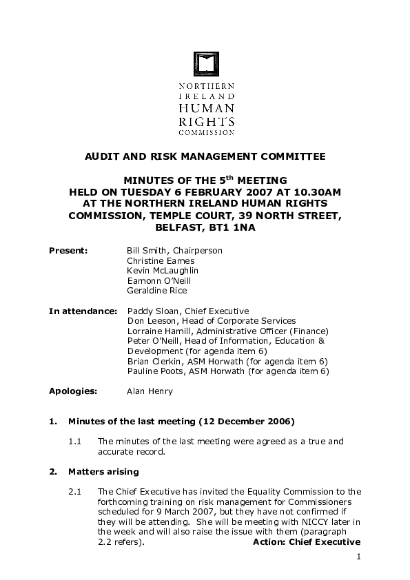 5th Audit and Risk Management Committee Minutes 6th February 2007