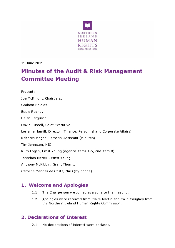 Read the Commission’s 60th Audit and Risk Management Committee Minutes 19 June 2019.