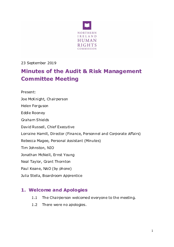 Read the Commission’s 61st Audit and Risk Management Committee Minutes 23 September 2019.