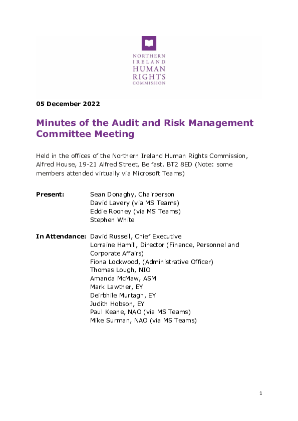 The Northern Ireland Human Rights Audit and Risk Management Committee held its 71st meeting on 5 December 2022.