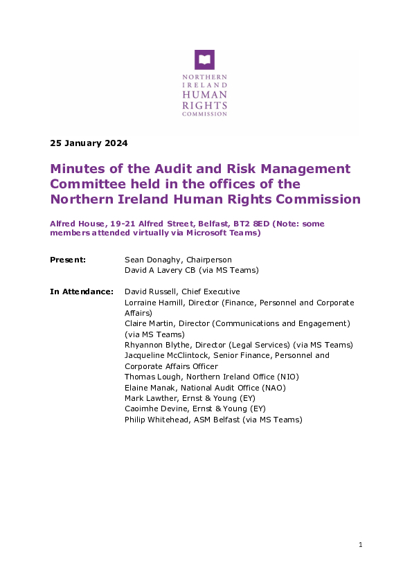 The Northern Ireland Human Rights Audit and Risk Management Committee held its 75th meeting on 25 January 2024.