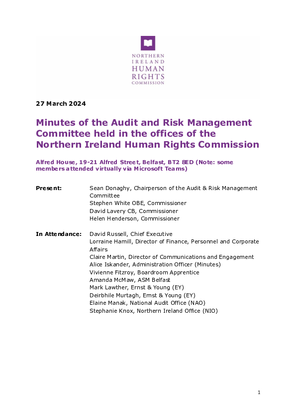 The Northern Ireland Human Rights Audit and Risk Management Committee held its 76th meeting on 27 March 2024.