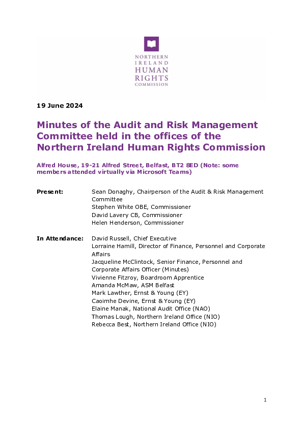 The Northern Ireland Human Rights Audit and Risk Management Committee held its 77th meeting on 19 June 2024.