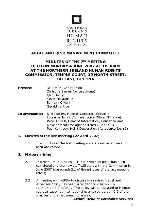 7th Audit and Risk Management Committee Minutes 4th June 2007