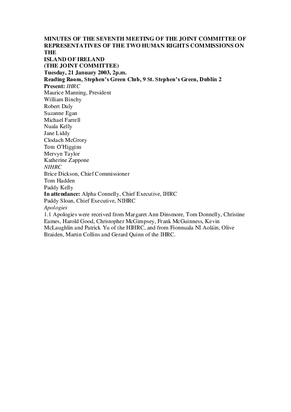Minutes of the 7th Joint Commission Meeting held 21st January 2003