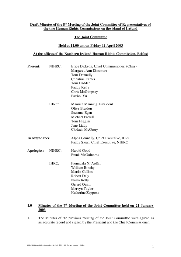 Minutes of the 8th Joint Commission Meeting held 11th April 2003