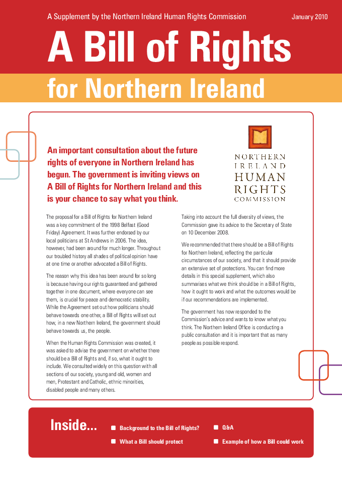 A newspaper supplement on advice on a Bill of Rights for Northern Ireland.