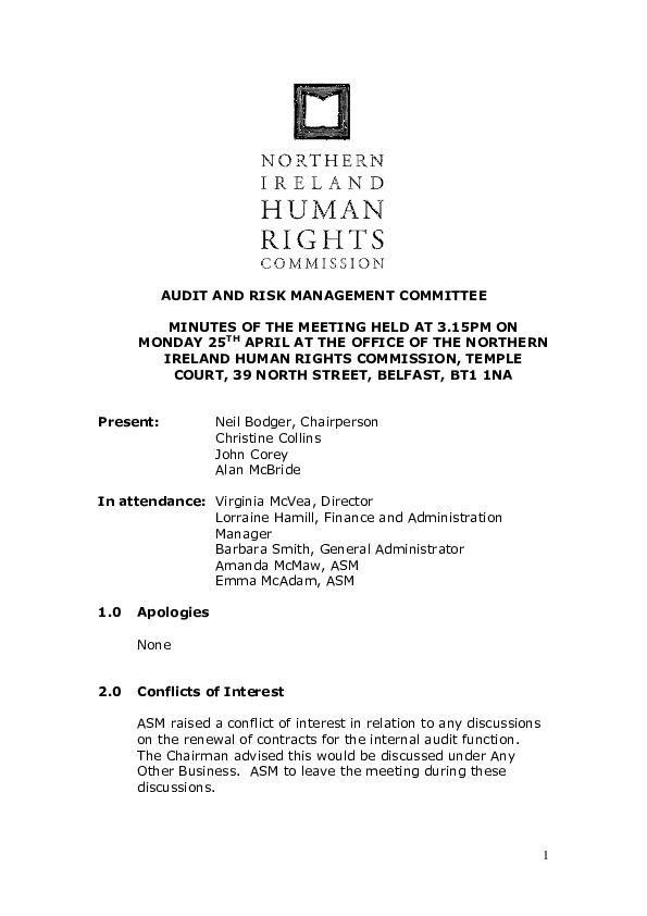 45th Audit and Risk Management Committee Minutes 25th April 2016