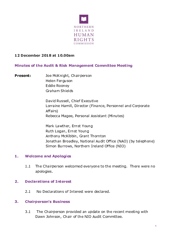 58th Audit and Risk Management Committee Minutes 12th December 2018