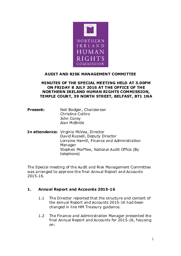 Special Audit and Risk Management Committee Minutes 8th July 2016