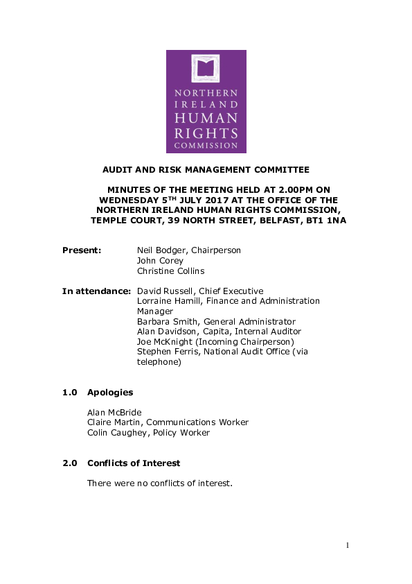 52nd Audit and Risk Management Committee Minutes 5th July 2017