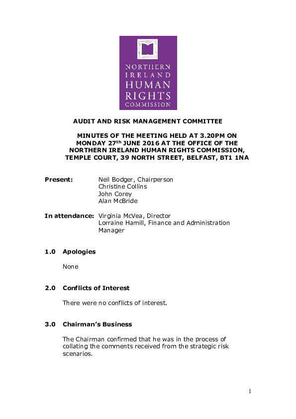 46th Audit and Risk Management Committee Minutes 27th June 2016