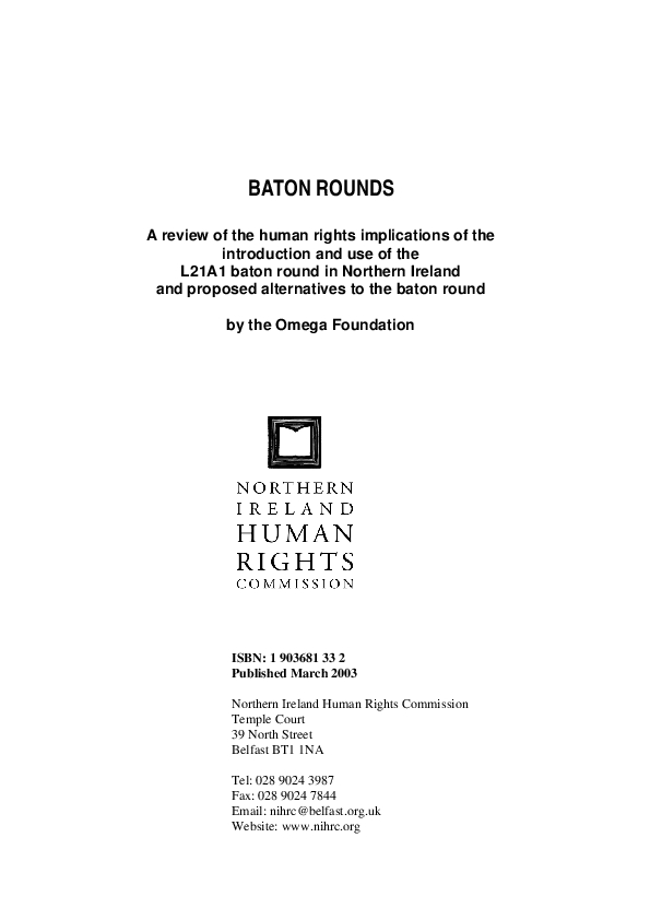The Northern Ireland Human Rights Commission engaged the Omega Foundation to carry out the research documented in this report because the Commission had concerns about potential breaches of human rights related to the use of baton rounds. We were especially concerned about the right to life.