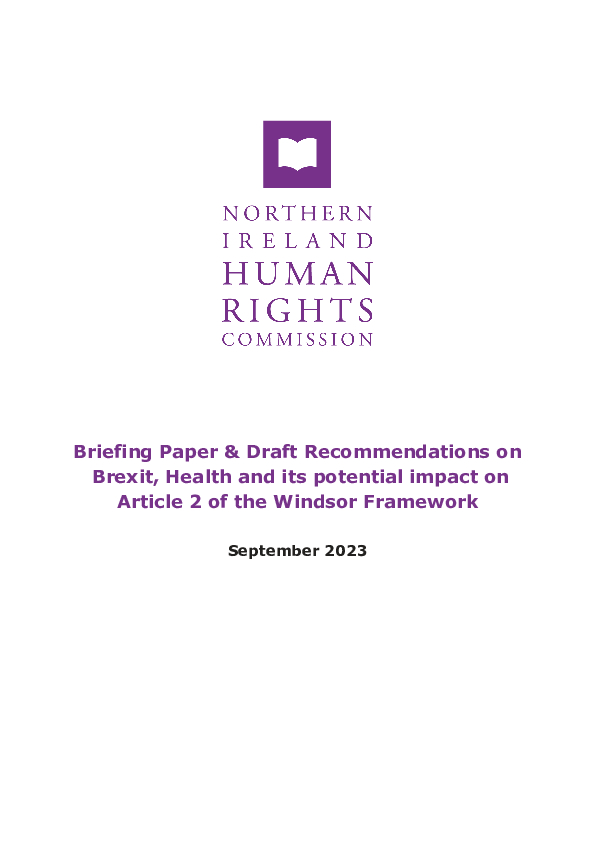 Briefing Paper & Draft Recommendations on Brexit, Health and its potential impact on Article 2 of the Windsor Framework