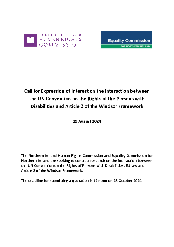 The Northern Ireland Human Rights Commission and Equality Commission for Northern Ireland are seeking to contract research on the interaction between the UN Convention on the Rights of Persons with Disabilities, EU law and Article 2 of the Windsor Framework.