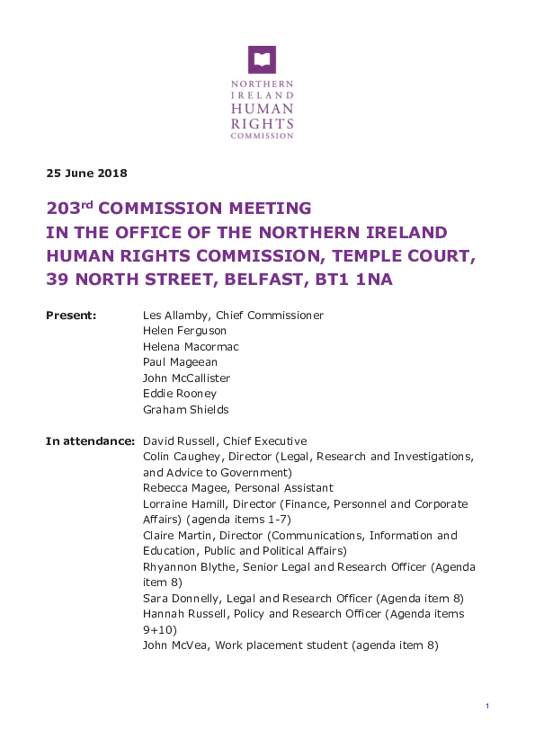 203rd Commission Minutes 25th June 2018