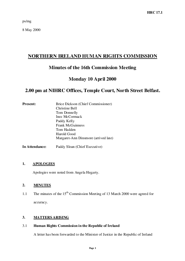 Minutes of the 16th Commission Meeting, held on 10 April 2000.
