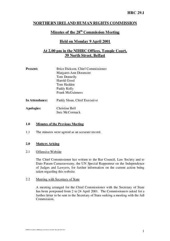 Minutes of the 28th Commission Meeting, held on 9 April 2001.
