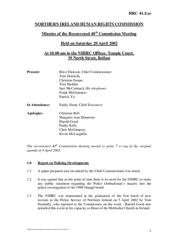 Minutes of the 40th Commission Meeting, held on 20 April 2002.