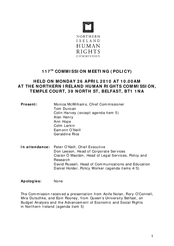Minutes of the 117th Commission Meeting, held on 26 April 2010.