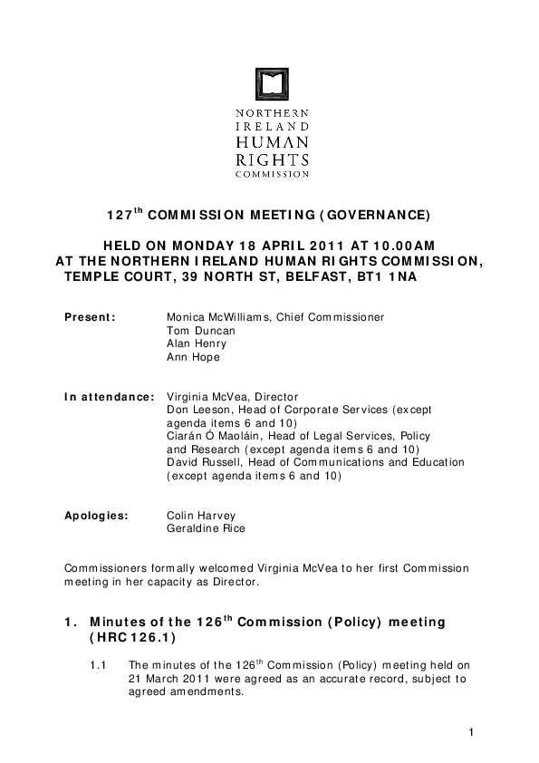 127th Commission Minutes 18th April 2011