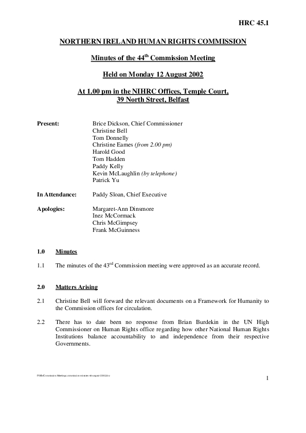 44th Commission Minutes 12th August 2002