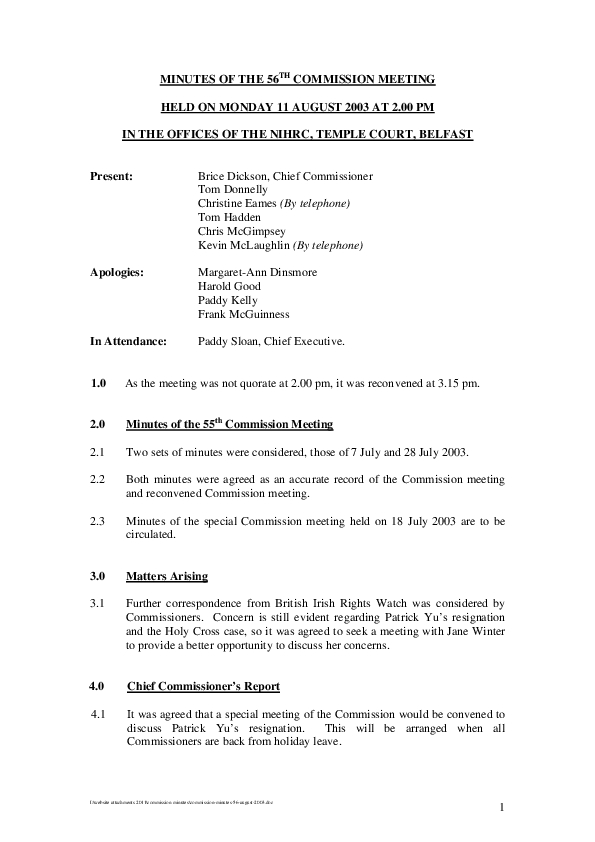 56th Commission Minutes 11th August 2003