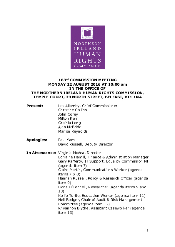 Minutes of the 183rd Commission Meeting held on 22nd August 2016